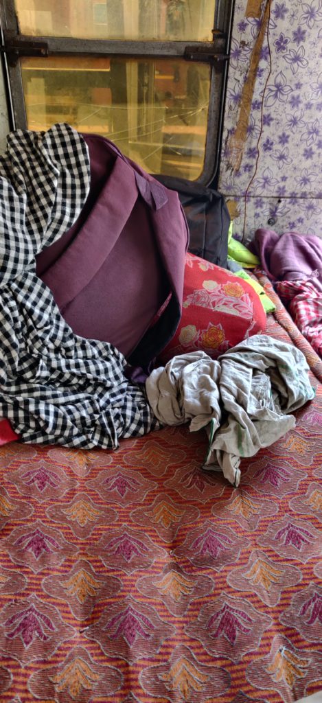 His belongings plonked on a mattress that doubles up as a bed. | Mehnaz Yasmin