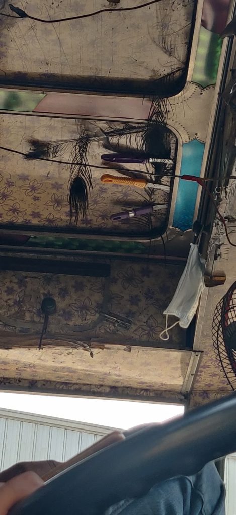 The ceiling of the truck lined with knives. | Mehnaz Yasmin