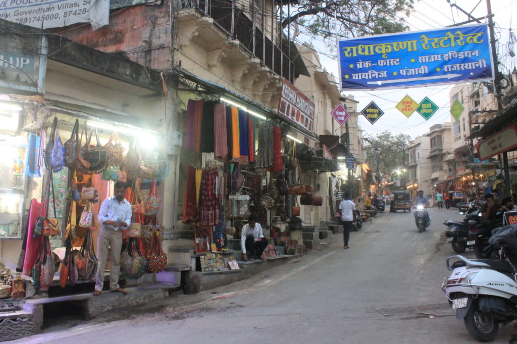 “We just sit idle outside our shops. It is timepass,” said Ishwar Sahu, a salesman at a handicraft store that sells leather bags.
