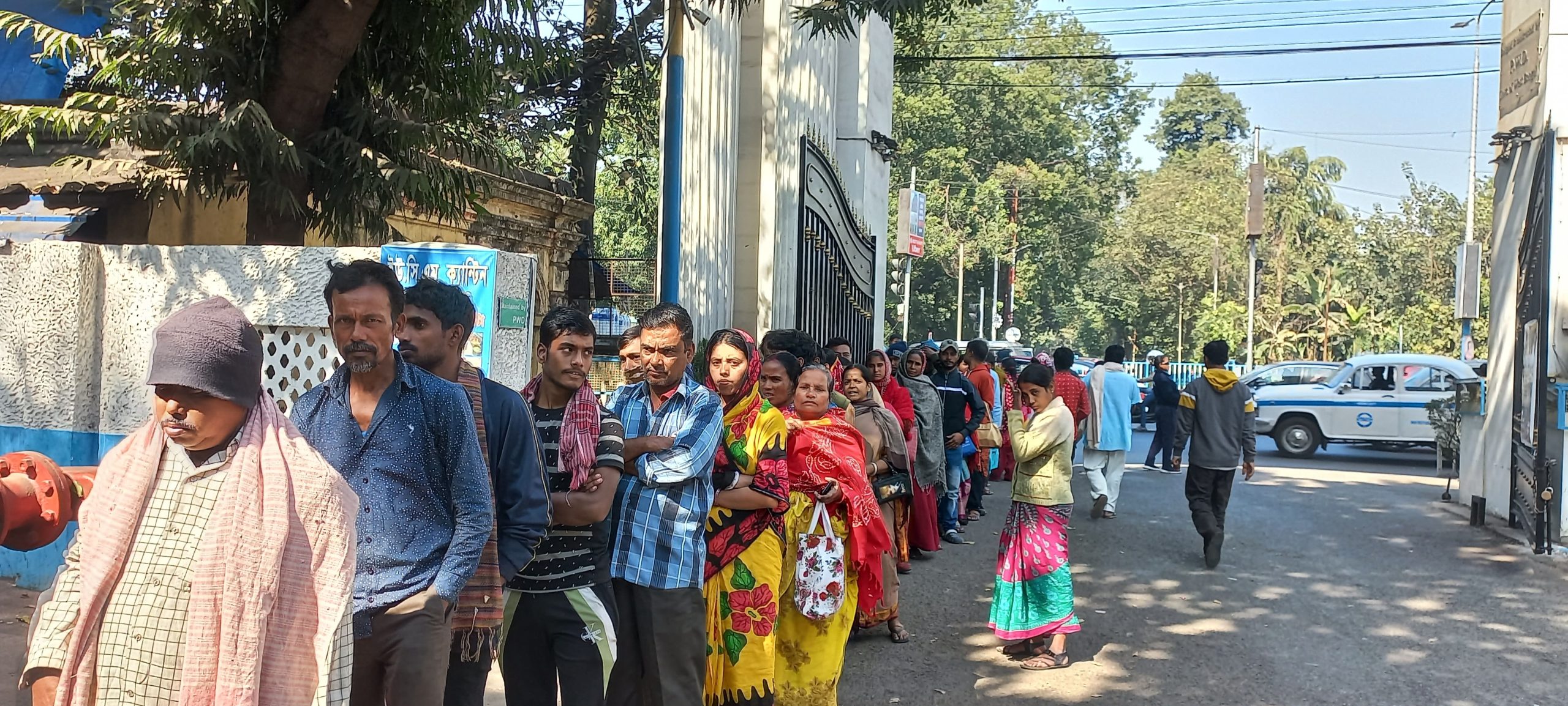Over 200 people have queued outside a makeshift canteen in the scorching sun inside the Seth Sukhlal Kaelinrnani Memorial (SSKM) Hospital, in Kolkata. These men, women and children are not waiting for a doctor but for food.