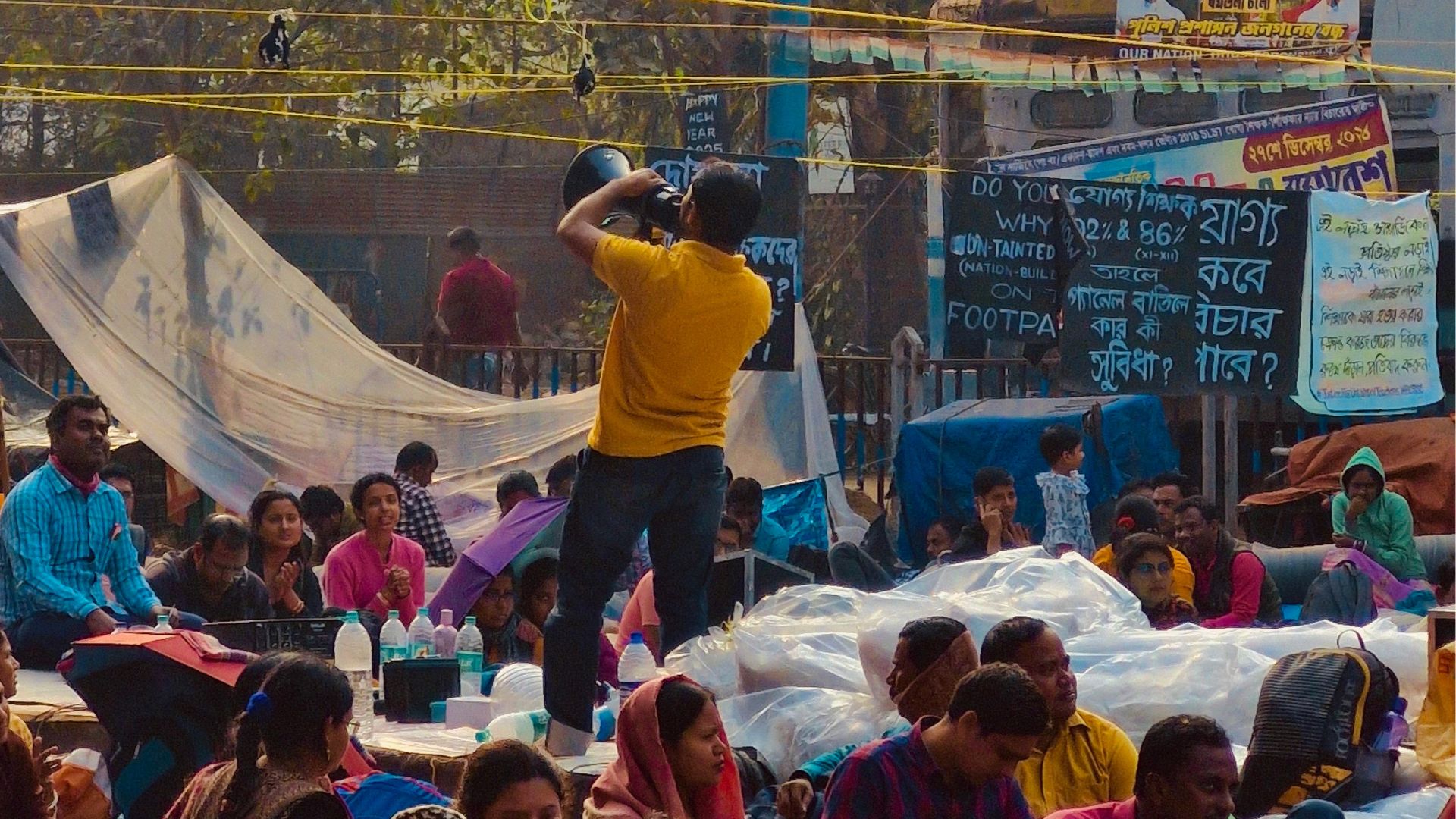 On the sidewalks of Kolkata’s crowded Dharamtala, the former capital of British India, the clatter of bottles echoed as over 500 teachers braved the winter nights, protesting for job security.
