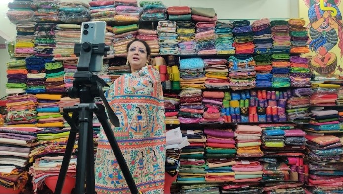 Boutique owners sell sarees through live phone shows on social media to reach global audience