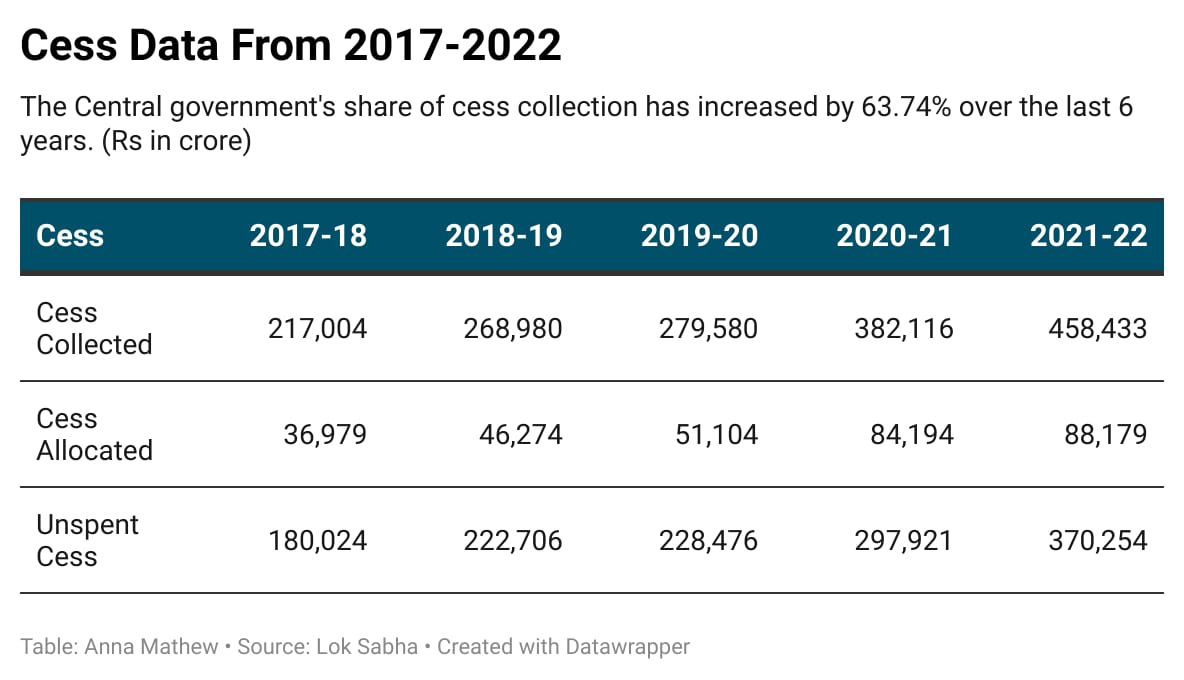Out of Rs19.6 lakh crore collected as cess from 2017 to 2022, only